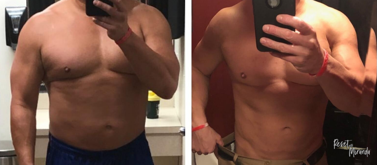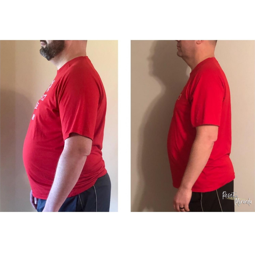 "The Reset has been a journey for the past 42 days. I have lost 31 pounds and 23 inches! I look at the pictures and I see the changes, but it is the overall difference with my mind and body that has truly changed. I can't say enough good things about this program (better sleep, more energy, more knowledge about food, etc). I am still a work in progress, but I am thankful I was able to take a step toward better overall health with The Reset with Miranda!"
