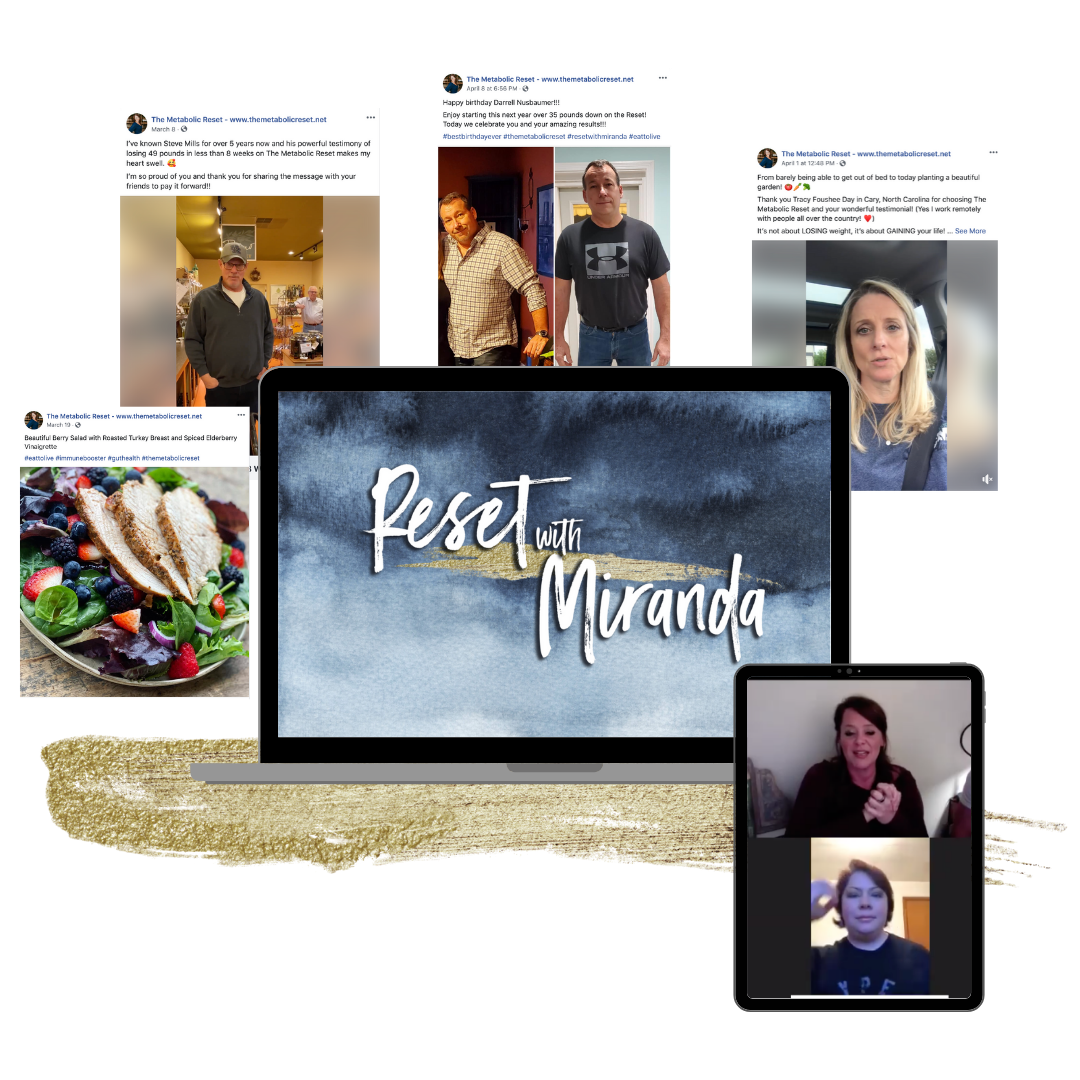 Live Weekly Video Group Support Calls to get all your questions answered, connect with Miranda and Reset Family from all over the country who are transforming their lives, and get all have the support you need.